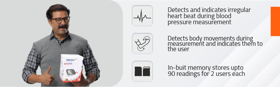 All BP monitors show Pulse rates, but Medtech takes this is one step further by telling you if your heart beat is irregular which is highly useful for you to detect any cardiac disease early on
