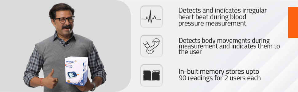 All BP monitors show Pulse rates, but Medtech takes this is one step further by telling you if your heart beat is irregular which is highly useful for you to detect any cardiac disease early on