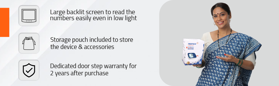 The BP Monitor has a backlight so that you can take readings even in the dark or dim light making your life even easier and more convenient