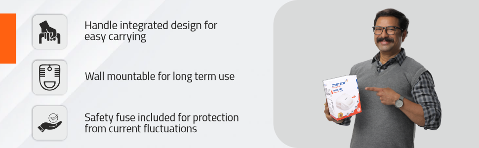 Adding to the safety, Medtech Nebulizers also have a safety fuse in the device to protect you from any current fluctuations adding to the complete safety.