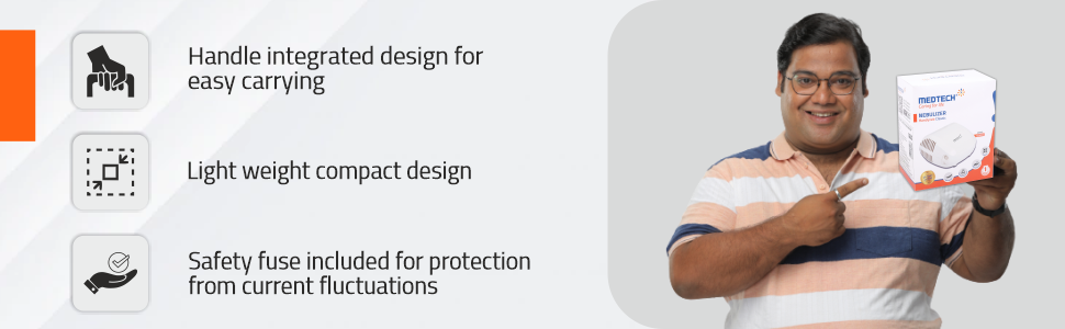 Adding to the safety, Medtech Nebulizers also have a safety fuse in the device to protect you from any current fluctuations adding to the complete safety.