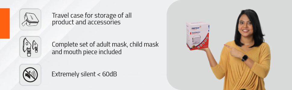 Keep your respiratory problems at bay with MEDTECH Travelite Nebulizer - A compact and powerful nebulizer ideal for patients experiencing respiratory conditions like asthma, COPD, sinus, and most respiratory conditions.